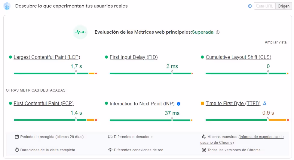 The key lies in get approved in the Core Web Vitals evaluation provided by Google, determined by the result of “Outdone” or “Not outdone.” However, it's vital to remember to select the “Source” option in the upper right corner. This ensures that you can view the data covering the entirety of your website instead of just limiting yourself to the URL being measured.
