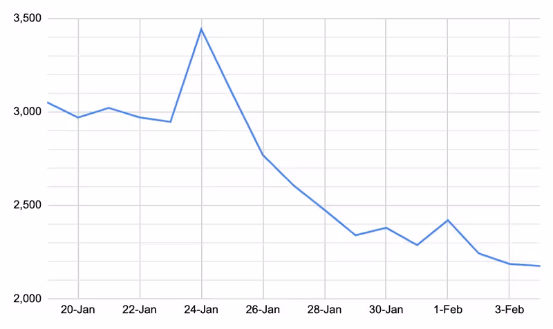 Before the Chinese New Year (CNY), on January 25, 2020, we see that response times to DNS queries take ~300 ms (milliseconds) on average, with an almost immediate increase of around ~350 ms, or 17% longer than 'normal'. While 50ms is' huge 'by Western standards (where you commonly see 60-100ms response times), when dealing with cross-border traffic it doesn't seem (on the surface) much to worry about.