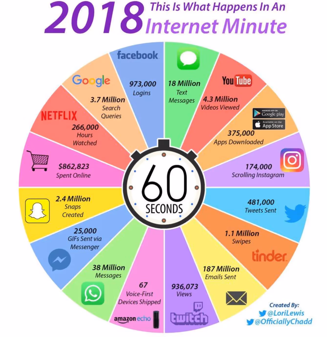 Among other things, the sales of voice devices For the first time, they increased from 50 to 67 per minute from 2017 to 2018. Twitch, an online gaming website, had nearly 1 million views in 2018. And the streaming giant Netflix, which managed to make its users consume 70,000 hours in 2017, it has increased to 266,000 hours in 2018 - every minute.