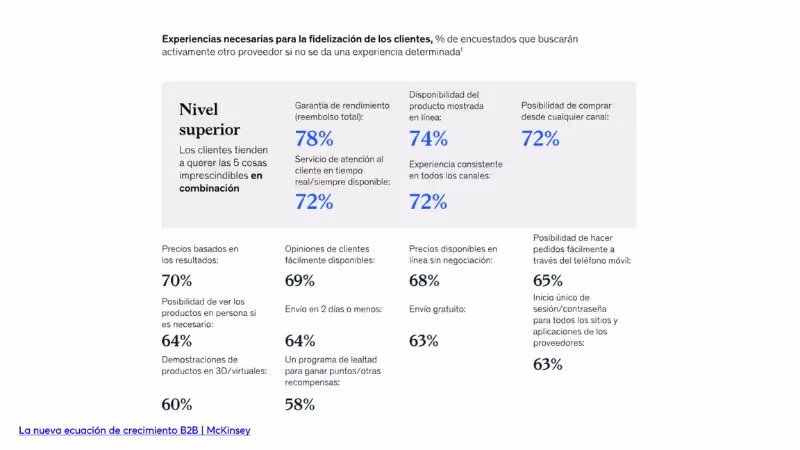 Gonzalo: Look, what these data show you is that B2B buyer behavior is increasingly similar to B2C. People have become used to entering a website and having a good user experience. In fact, manufacturers are going to seek to develop it for their own business. In addition, it tells you that if you are not offering this type of experience to your buyer, it is very easy for them to leave with a competitor.