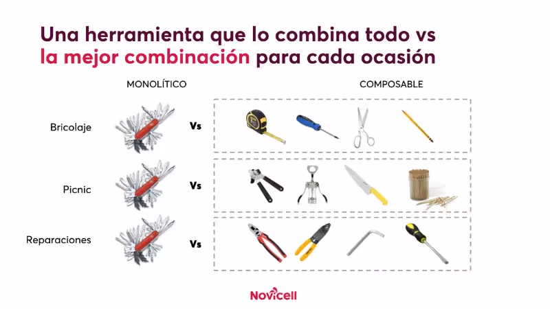 So I show you how I tell customers the difference between composable and what we understand as a monolithic solution that already has everything.