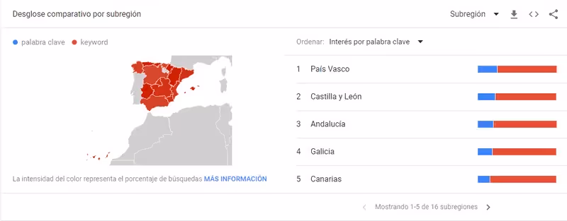 In addition, if you already have a few words in mind, but you don't know which one to focus on, you can compare your search levels to see the evolution of each one and, thus, make the best decision. In this way, it gives you a vision of which city they are looking for this keyword the most, which can help, for example, to get an idea of where to focus your campaign.