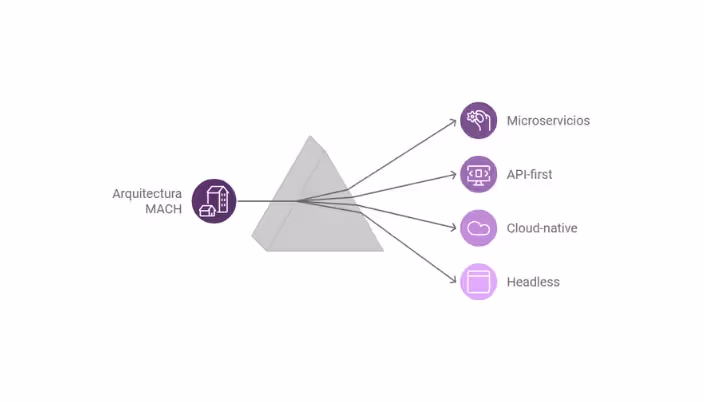 MACH son las siglas en inglés de Microservicios, API-first, Cloud-native y Headless. Estos componentes conforman una arquitectura flexible que presenta una alternativa a las tradicionales.