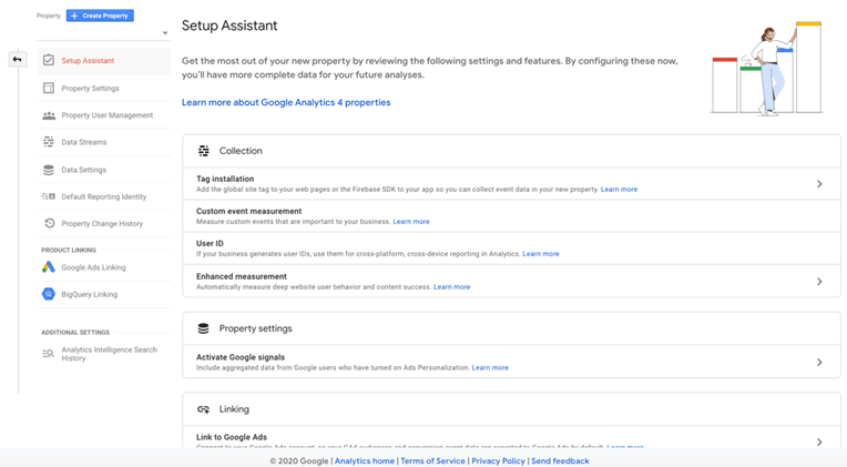 ¡Manos a la obra! Comienza a configurar tu cuenta y a recoger los datos desde tu nueva propiedad de Google Analytics: GA4.